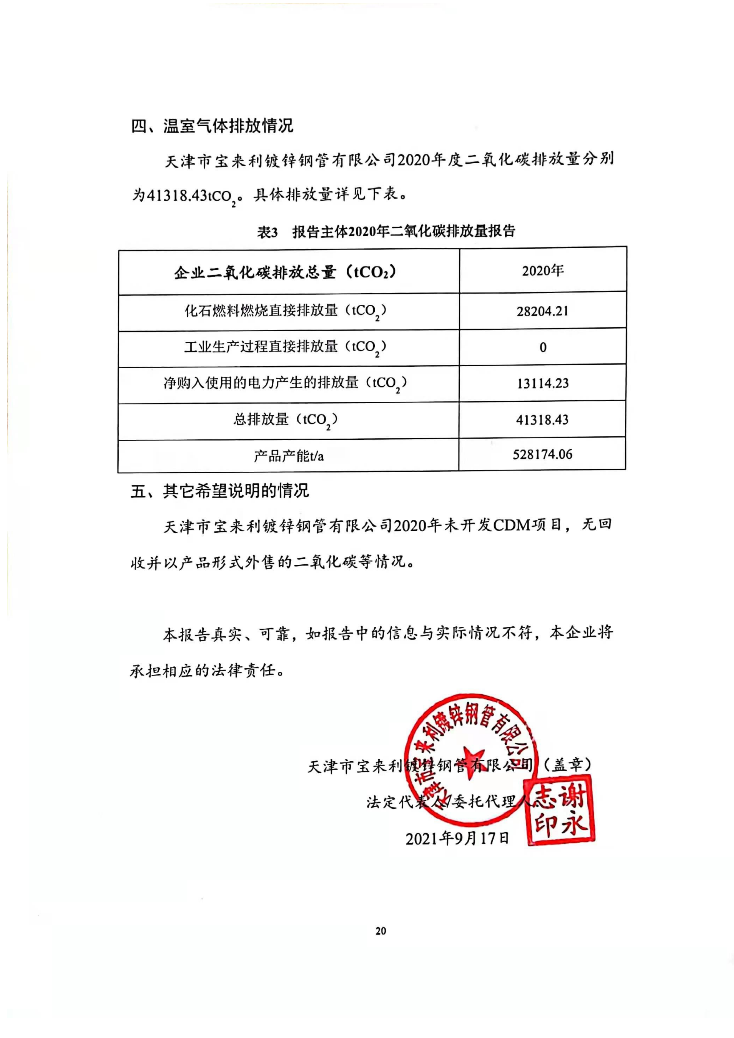 寶來利2020年度企業(yè)溫室氣體排放報告