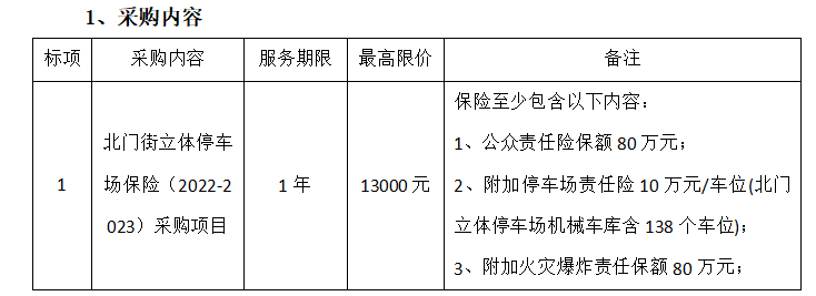 北門街立體停車場(chǎng)保險(xiǎn)(2022-2023)采購項(xiàng)目公告