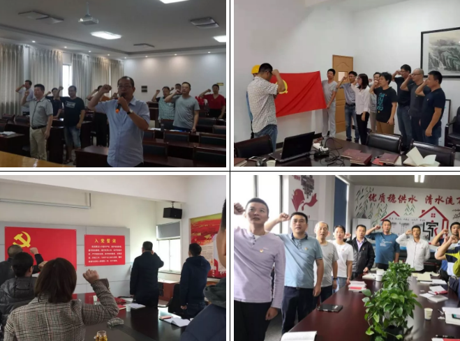 水業(yè)集團(tuán)行政支部、供水營業(yè)分公司支部、排水支部、污水廠支部、水廠支部、衢化水廠支部、工程公司支部開展全體黨員佩戴黨徽,重溫入黨誓詞、集中學(xué)習(xí)黨課、赴結(jié)對社區(qū)服務(wù)等系列黨員活動。