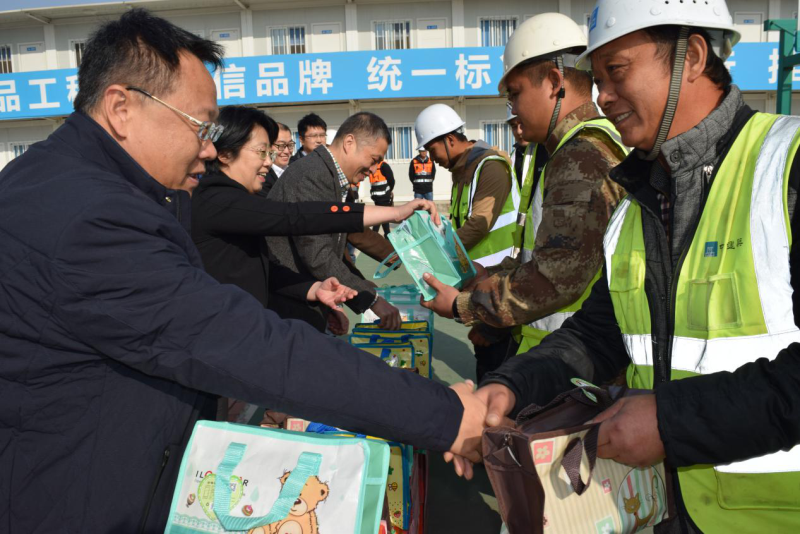 張衛(wèi)華一行重點參觀了項目施工現(xiàn)場及智慧展廳,了解了項目的建設(shè)情況,智慧工地、BIM信息系統(tǒng)、3D打印等各項新技術(shù)的應(yīng)用情況 。在項目生活區(qū),張衛(wèi)華與一線工人親切交談,了解他們的勞動強度和生活狀況,為他們送上省總工會專門定制的慰問禮包,為建設(shè)者送來了溫暖與祝福。