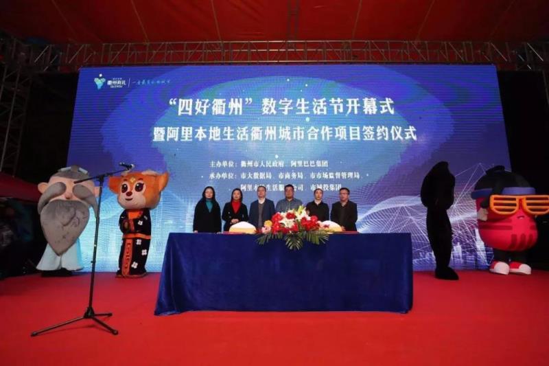 開幕式現(xiàn)場,播放數(shù)字經(jīng)濟(jì)宣傳視頻,并舉行了阿里本地生活衢州城市合作項(xiàng)目簽約。