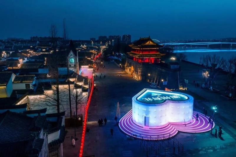 站在城墻下,你可以看到一個(gè)超大的“愛心禮樂盒”,站在盒子的內(nèi)部,你能體驗(yàn)震撼的光影秀,感受衢州悠久的歷史文化。