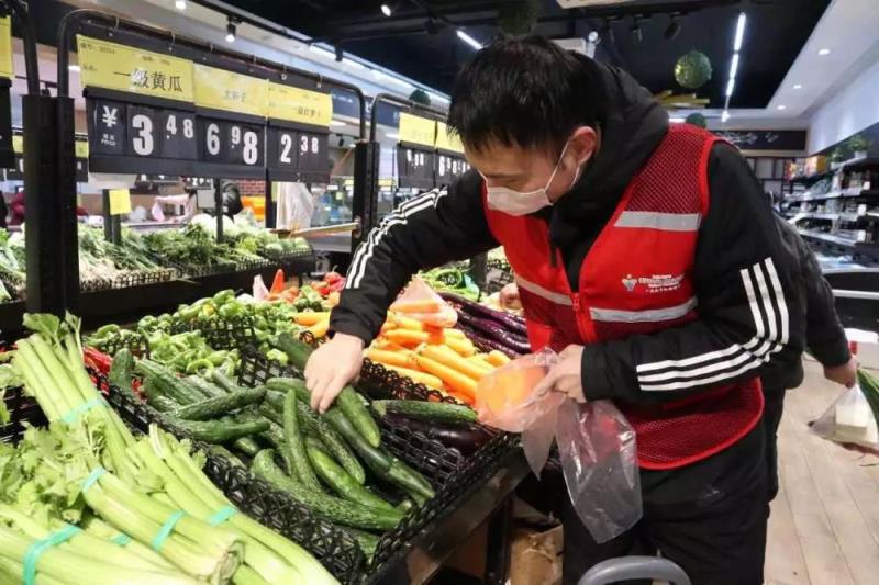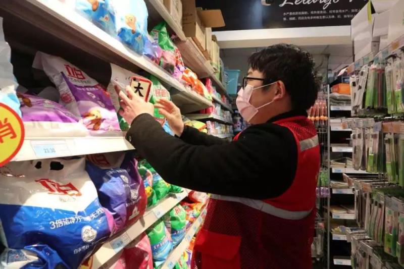 下午,黨員樓棟長黃吉和張鵬在專職網(wǎng)格員余晶的陪同下,前往超市為社區(qū)轄區(qū)內(nèi)居家隔離的住戶精心挑選生活必須物品。