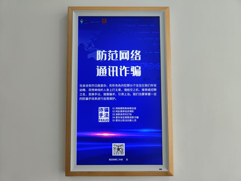 積極利用集團(tuán)公司電視大屏、BOE畫屏、LED顯示屏滾動播放預(yù)防電信網(wǎng)絡(luò)詐騙宣傳主題內(nèi)容,并充分發(fā)動全體職工爭當(dāng)防范電信網(wǎng)絡(luò)詐騙的社會宣傳員,在釘釘及微信工作群積極發(fā)布防詐騙安全攻略等進(jìn)行反詐宣傳,最大程度擴(kuò)大宣傳的覆蓋范圍,增強(qiáng)影響力。