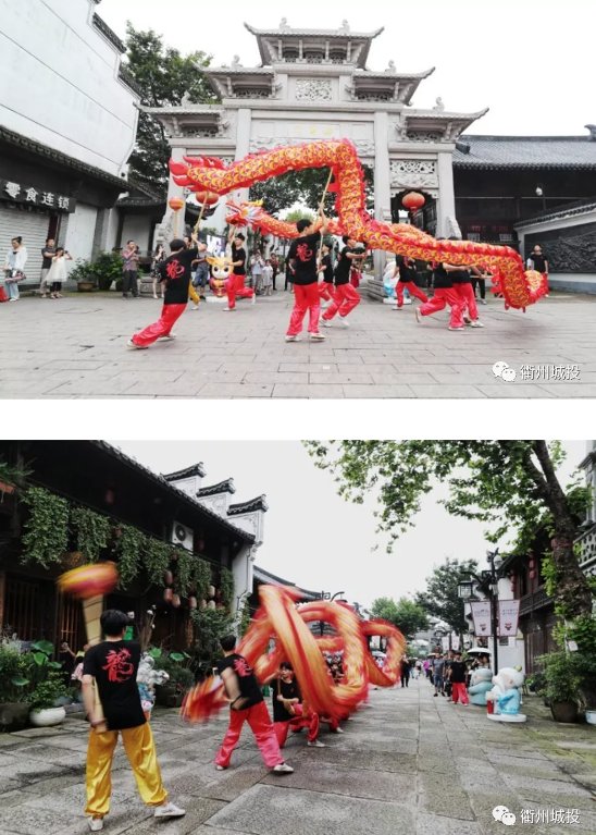 在鼓樂的伴奏下,來自衢州中專龍獅團(tuán)的舞龍隊(duì)在水亭街一會(huì)兒俯身游走,一會(huì)兒凌空騰躍,靈活地展示著盤、游、騰等舞龍動(dòng)作,引來觀眾陣陣喝彩。